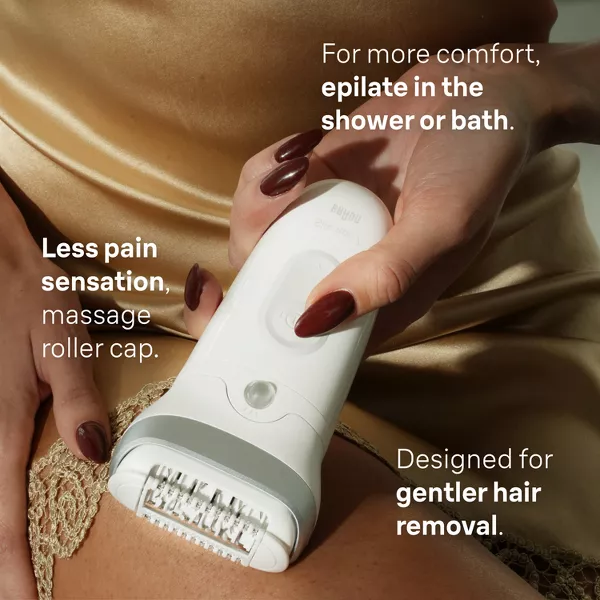 • GENTLE HAIR REMOVAL WITH WET AND DRY USAGE: Gently epilate in the bath or in the shower for less pain, more comfort