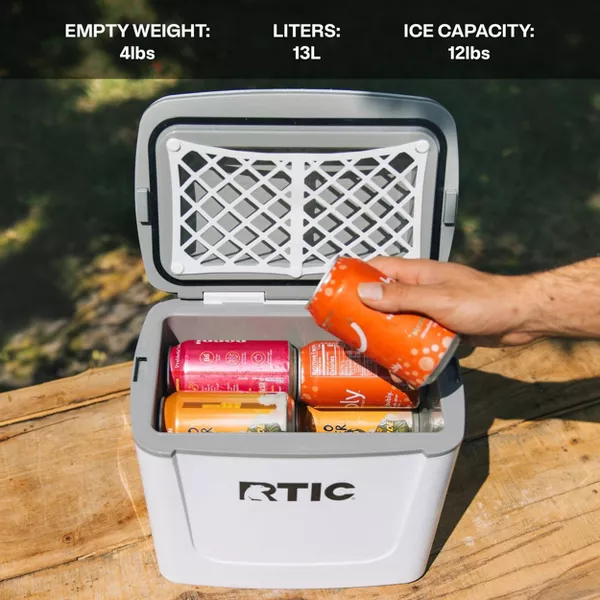 The 8 QT RTIC Road Trip Personal Cooler is light, strong, and ready to travel. This personal-sized hard cooler fits up to 12 cans and locks in the cold for up to 40 hours. With a compact design and durable handle that locks the lid when upright, it’s the perfect grab n’ go cooler.